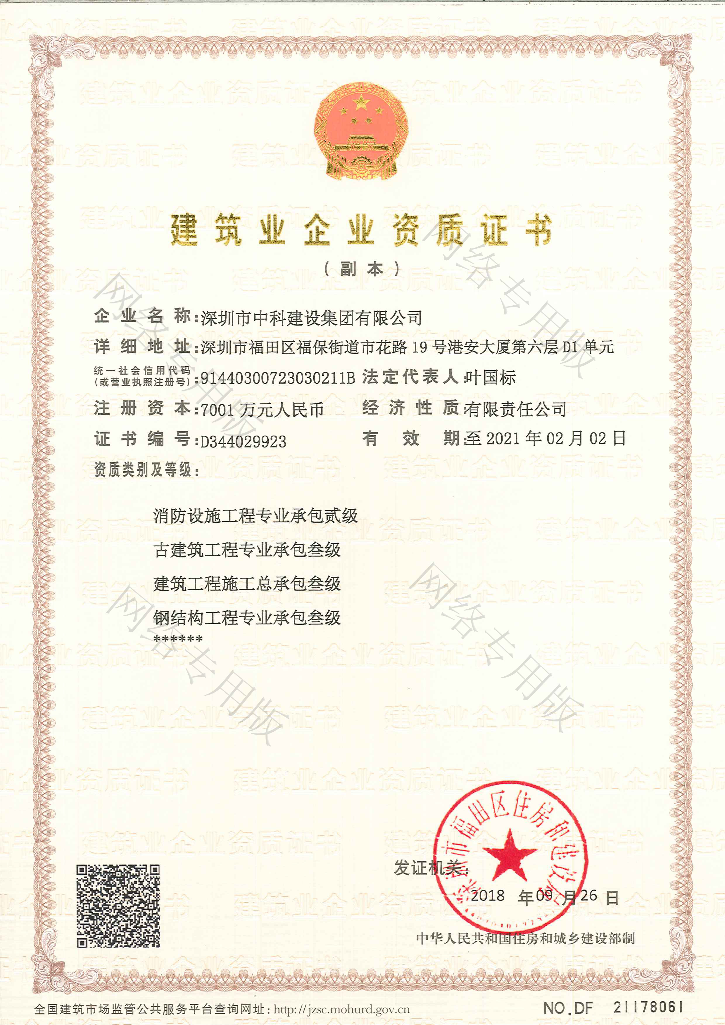 近日,經深圳市福田區住房與建設局審核批準,我司獲得建筑工程施工總承包叁級及鋼結構工程專業承包叁級兩項資質。